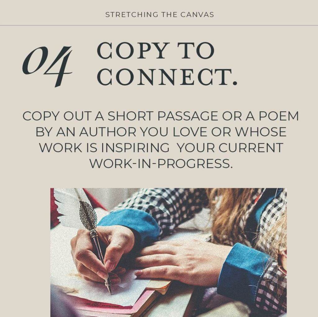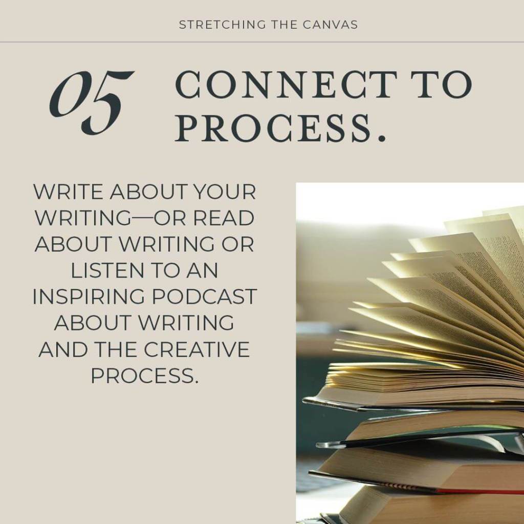 - Write about your writing—or read about writing or listen to an inspiring podcast about writing and the creative process.