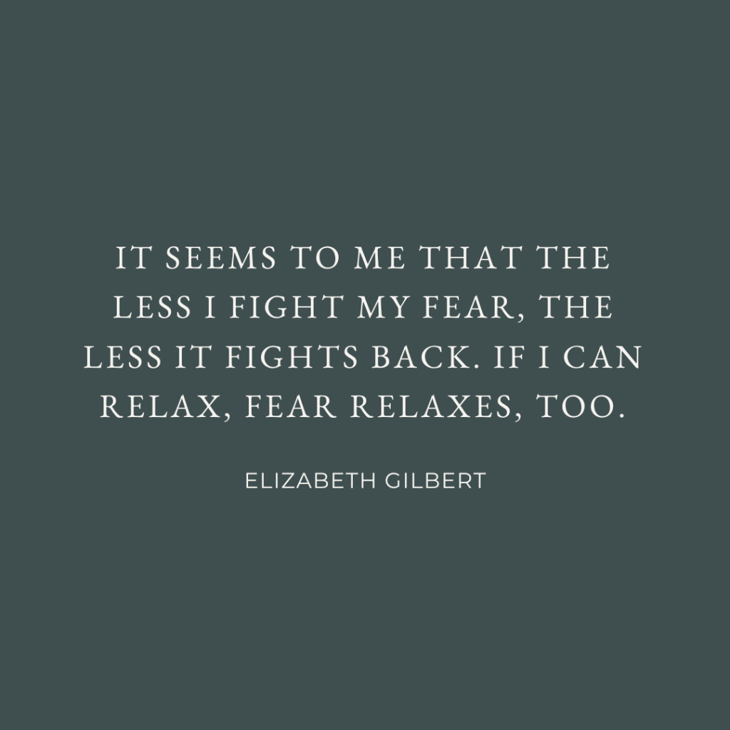 As Elizabeth Gilbert writes in Big Magic, the solution isn’t ignoring, banishing or killing off the fear that arises alongside our creativity, but instead recognizing it, acknowledging it’s there and why, and she uses the image of inviting fear along with her and creativity on a road trip, stressing “[t]here is plenty of room in this vehicle for all of us,” but also being very clear that fear is “absolutely forbidden to drive.”