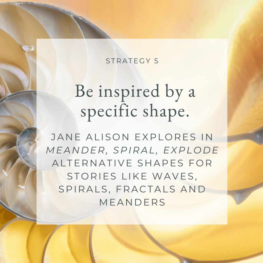 Jane Alison proposes some different models Meander, Spiral, Explode, exploring forms like waves, spirals, explosions, and digressions—patterns, she writes, “that yielded connections and meaning, rather than anything linear.”